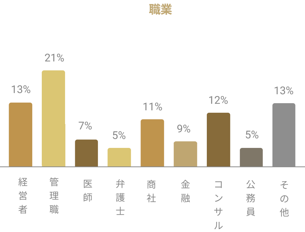 • 一流企業社員、経営者または管理職、公務員​、医師、士業、研究者などの専門職等